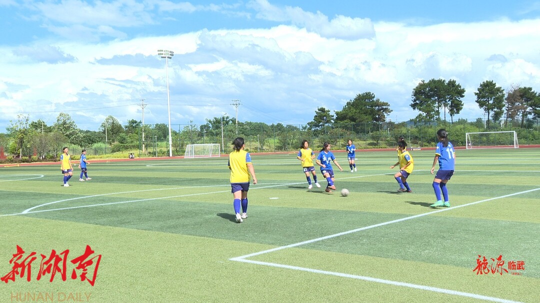 在临武县职业中专足球场,来自永州市的女子代表队正在进行最后的热身训练,她们的身影在夕阳下显得格外矫健,每一次传球、每一次射门都透露出对比赛的认真与专注。