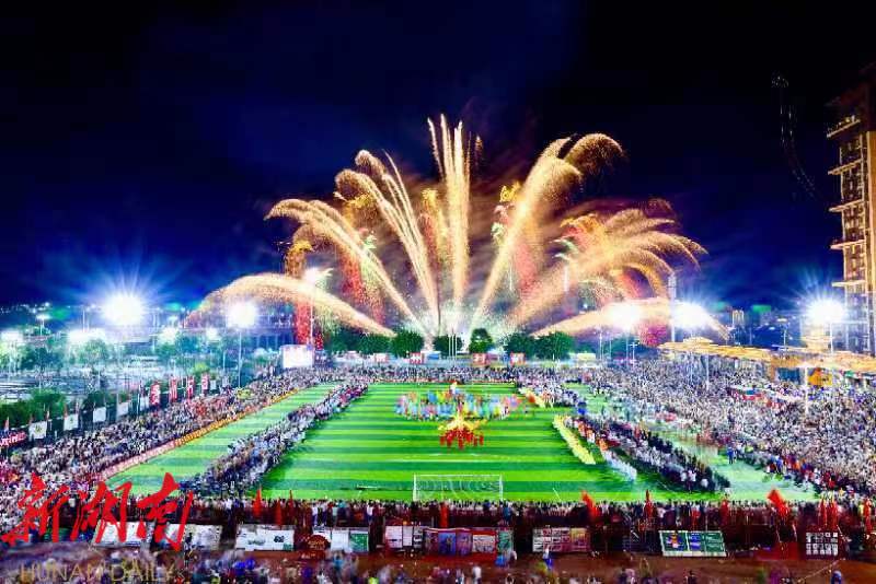 随着一束束耀眼的光线划破夜幕,焰火在天空依次绽放……7月20日晚,贵州村超2024总决赛之夜,湖南庆泰花炮集团友情赞助,将浏阳的烟花文化与榕江的多彩风情交融,为观众送上一场震撼的烟花盛宴。