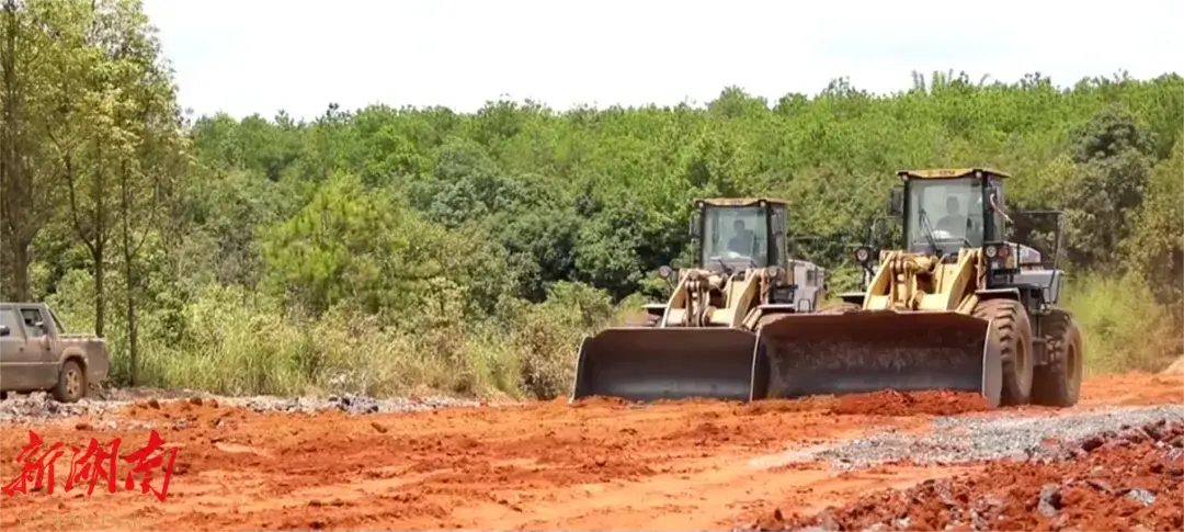 在桂新高速桂阳至新田标段的施工现场,工人们也避开高温时段,有条不紊地进行路基填筑作业,现场机器轰鸣,建设场景火热。