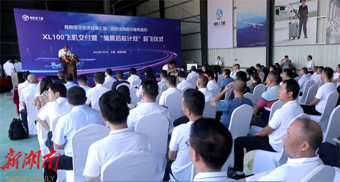 湛蓝色的晴空下,一架产自桂阳的XL100飞机自由翱翔——近日,桂阳低空经济成果汇报暨翔东龙XL100飞机交付仪式在仁义机场举行,为现场嘉宾们带来一场精彩纷呈的飞行表演。