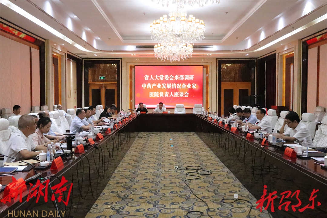 省人大常委会调研组一行首先来到廉桥中药材市场、湖南省松龄堂中药饮片有限公司、湖南省南国药都中药饮片有限公司实地走访调研邵东市中药产业发展情况,随后分别召开政府部门座谈会和企业家、医院负责人座谈会,听取了邵阳市中药产业发展情况汇报和邵东市、新邵县、隆回县、绥宁县中药产业发展情况汇报,以及关于促进中药产业高质量发展的意见建议。