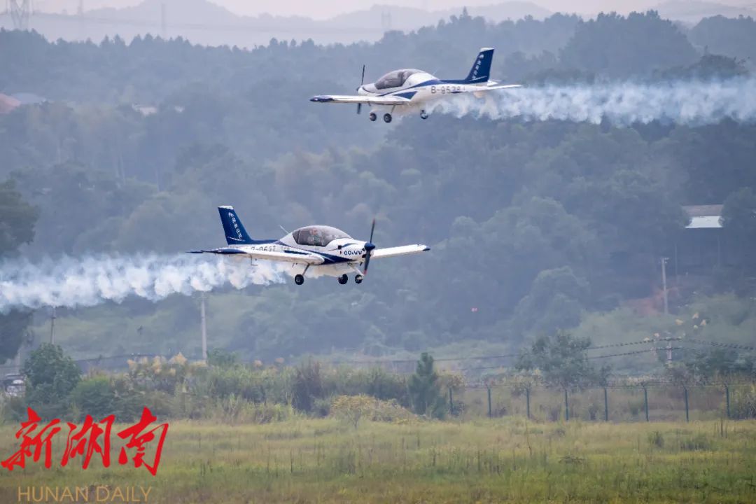 株洲芦淞机场,湖南山河飞行表演队现场特技飞行表演。湖南日报全媒体记者 辜鹏博 摄