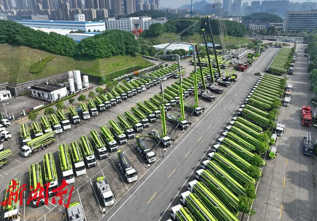 中联重科麓谷工业园,各类工程机械产品一字排开。湖南日报全媒体记者 童迪 摄