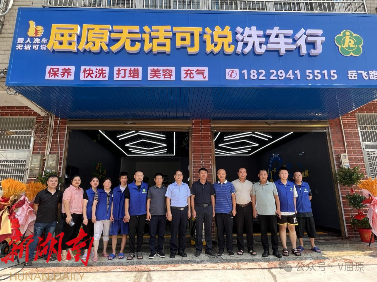 湖南日报·新湖南客户端7月26日讯(通讯员 周家希)7月25日,屈原管理区首家残疾人“无话可说”连锁洗车行屈原店开业。区党委书记向科军、岳阳市残联党组书记周拥军、市残联三级调研员陈更生,高度重视,到场调研和鼓励残疾人增强创业就业信心。
