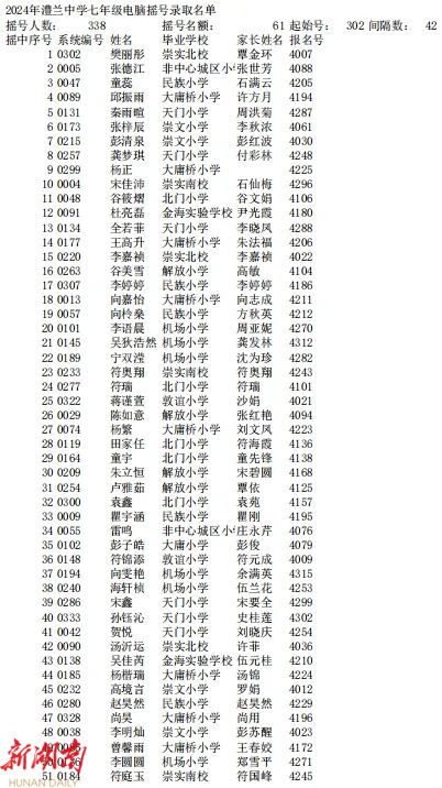 初中电脑派位录取名单