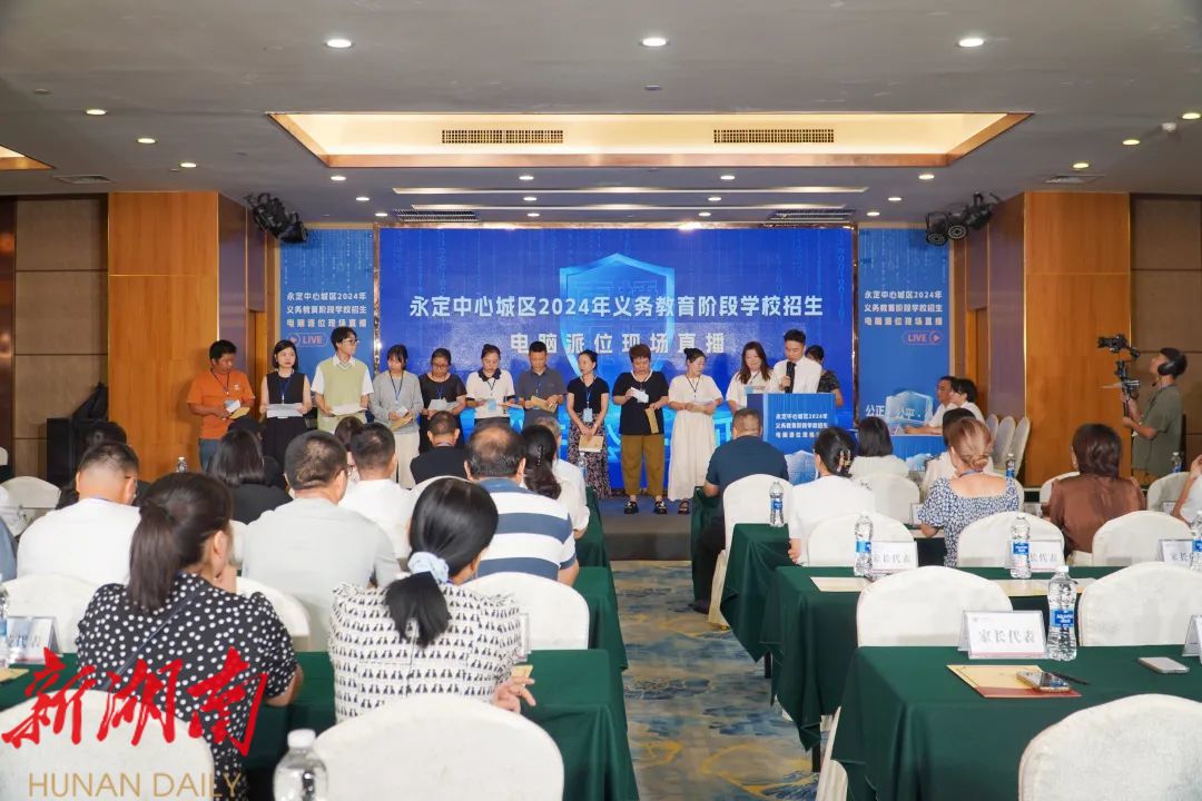 湖南日报·新湖南客户端7月27日讯(记者 解雯惠) 7月26日,永定中心城区2024年义务教育阶段学校招生电脑派位现场直播举行,1535名学龄前儿童和小学生参加摇号。