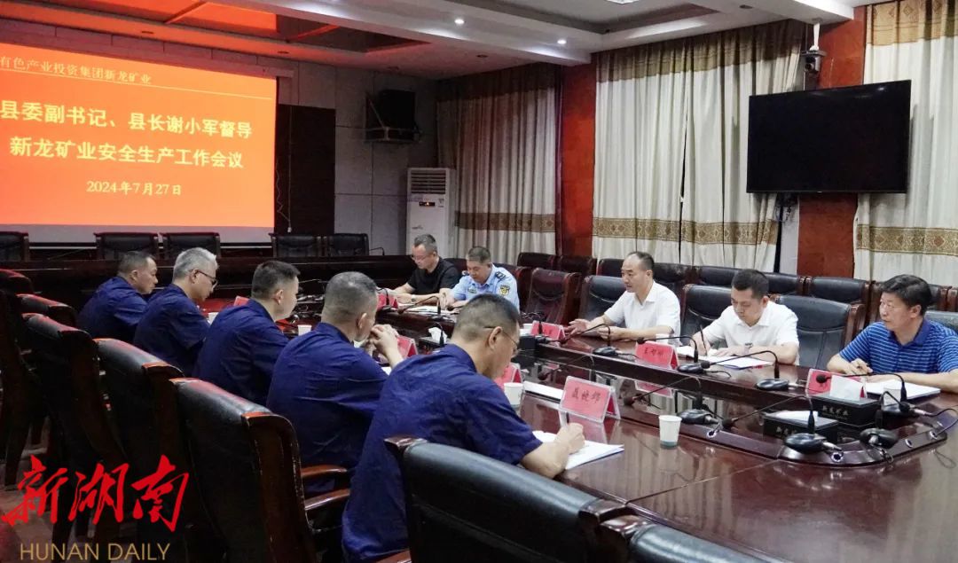在新龙矿业,谢小军召开座谈会,听取企业和相关部门关于安全生产的情况汇报。他强调,安全是发展的前提,要认真贯彻习近平总书记关于安全生产的重要指示批示精神,牢固树立安全生产红线意识,深刻汲取事故教训,举一反三,全面排查安全隐患和管理漏洞,确保从源头上杜绝安全事故发生。要持续加大安全生产投入和“科技兴安”力度,加强内部班子和员工的培训和管理,把各项规章制度和技术要求严格执行到位,切实做到安全责任到岗、责任到人,提高本质安全生产水平。相关监管部门要加强监督检查,牢守安全生产底线,持续排查整改安全隐患,严格执法,全力防范和遏制安全事故发生。