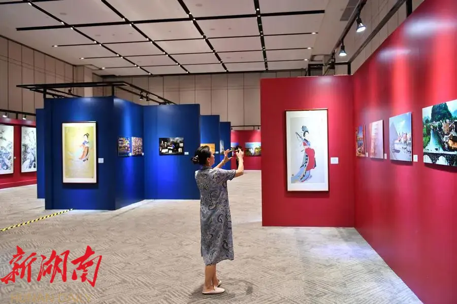 7月25日,参会嘉宾在中非文化交流展区参观。