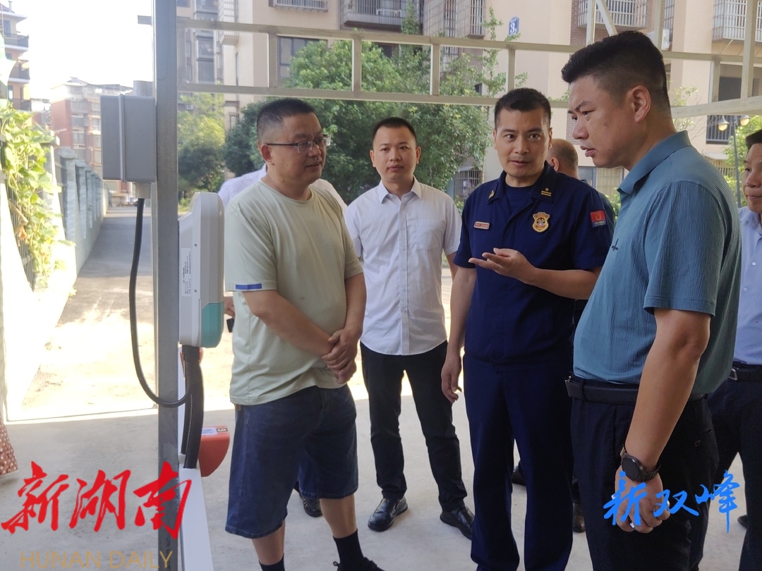 新双峰客户端7月26日讯(全媒体记者 王乐星 实习记者 贺毓垣 通讯员 贺超荣 )7月25日,县委常委、常务副县长伍鹤群率县发改、消防、住建、应急、自然资源等部门以及县铁塔公司负责人到永丰街道部分住宅小区调研“两电”安全隐患全链条整治工作。