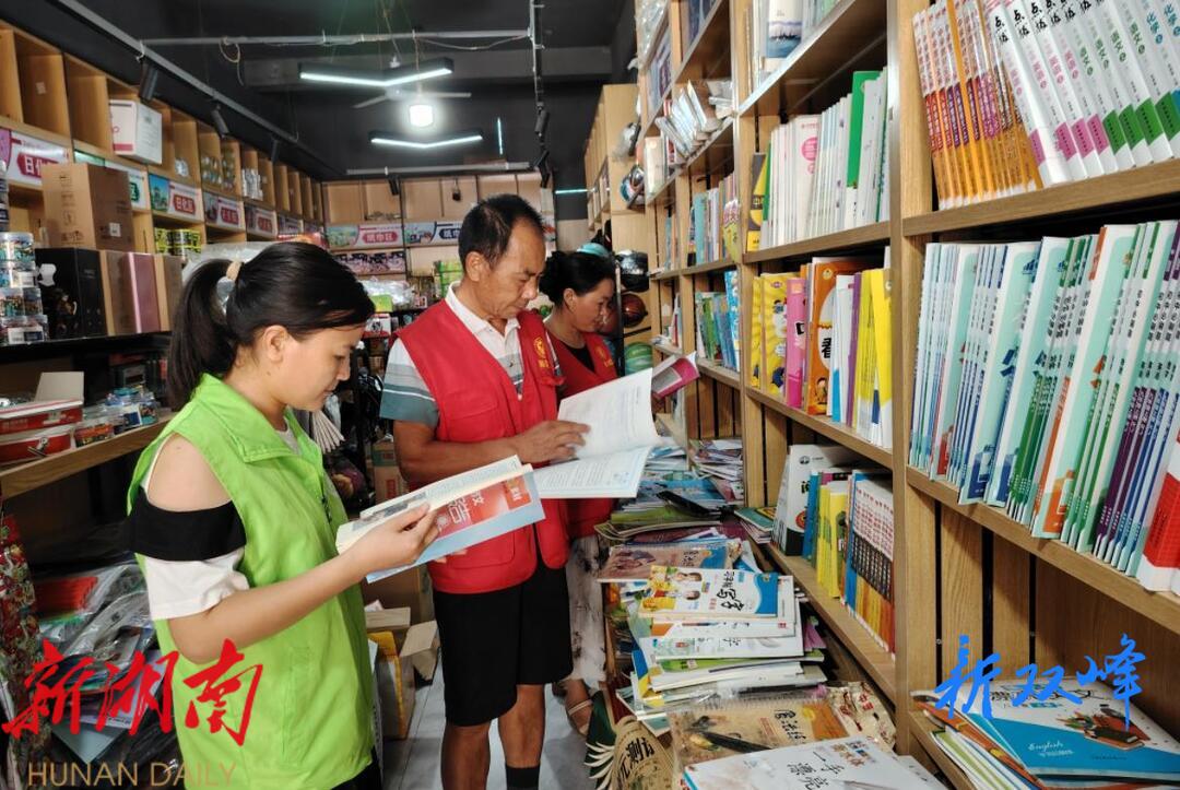 新双峰客户端7月26日讯(通讯员 周伟华 朱道辉)为进一步净化校园环境,保护学生的身心健康,提高学生们的鉴别“黄”“非”的能力,7月25日,杏子铺镇在城区学校开展利剑护苗·绿书签行动。