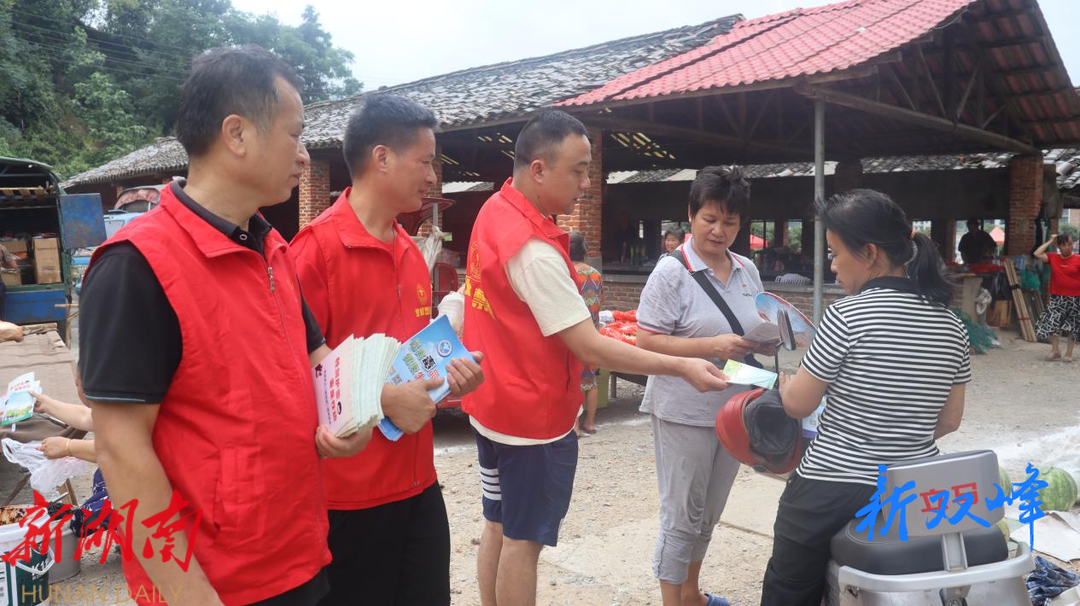 新双峰客户端7月26日讯 (通讯员 彭红卫 龙淑红)7月26日,正值树山集市赶场,石牛乡政府组织社会治安办工作人员和禁毒志愿者到树山集市开展禁毒预防教育和未成年保护宣传。