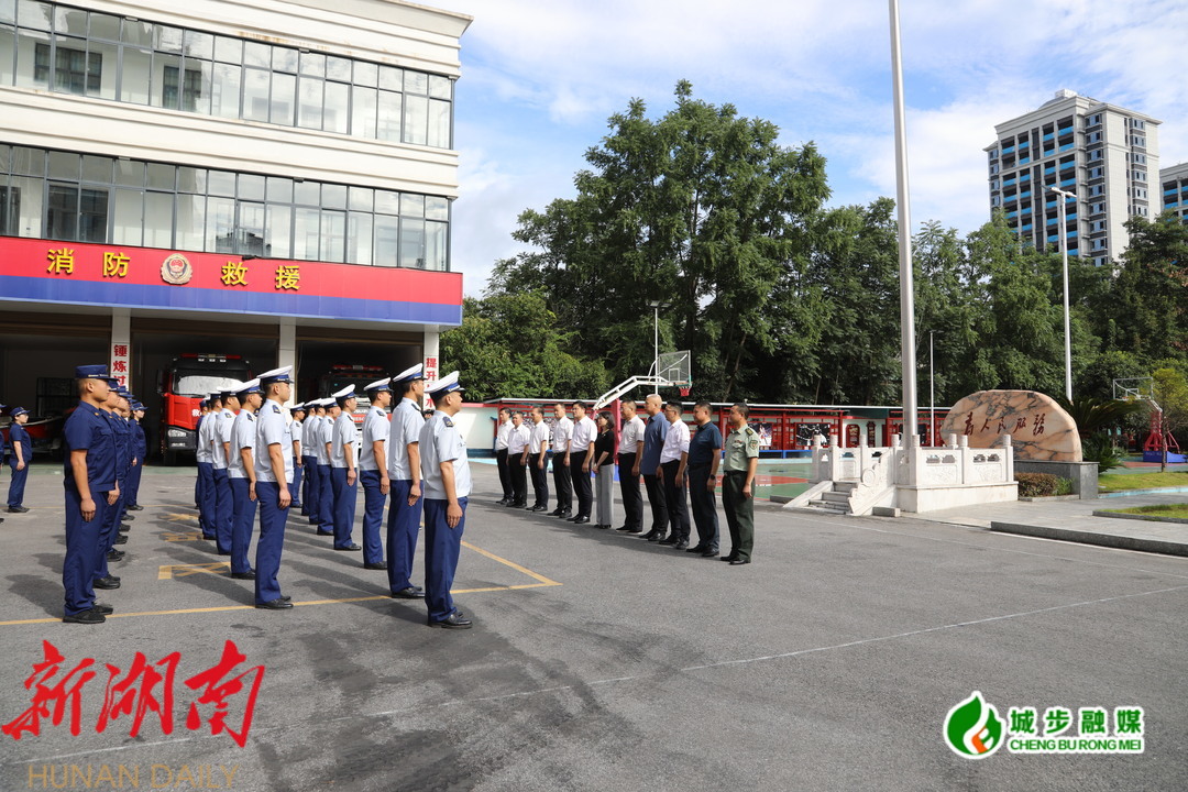 图为县委书记余勋伟一行在县消防救援局走访慰问