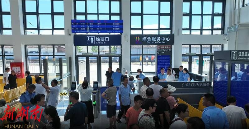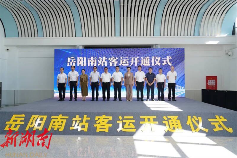 湖南日报·新湖南客户端7月30日讯(通讯员 熊佳 周星亮 周昱君) 一条铁路穿南北,万家期盼在心头。7月30日,岳阳县举行京广铁路岳阳南站客运开通仪式。时隔20年,岳阳南站以“新颜”迎客,标志着岳阳县彻底结束“有铁路无客运”的历史。广铁集团副总经理、长沙铁路办事处党委书记、主任郑圣刚,副市长魏淑萍,县委书记肖湘晖,县领导宋华、周峰、周里、王靖、童勋海、张文毅出席,并与参建单位、寓外乡友、到场群众等共同见证这一历史性时刻。