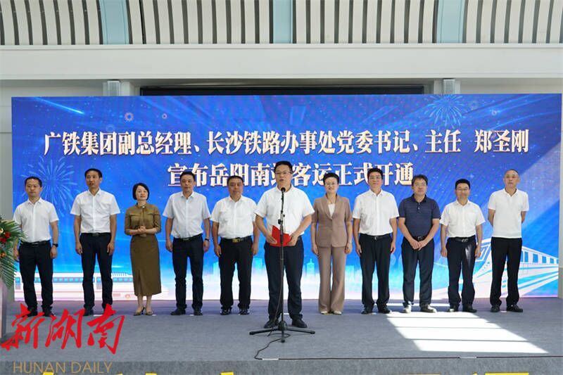 仪式现场,广铁集团副总经理、长沙铁路办事处党委书记、主任郑圣刚宣布,岳阳南站客运业务正式开通。