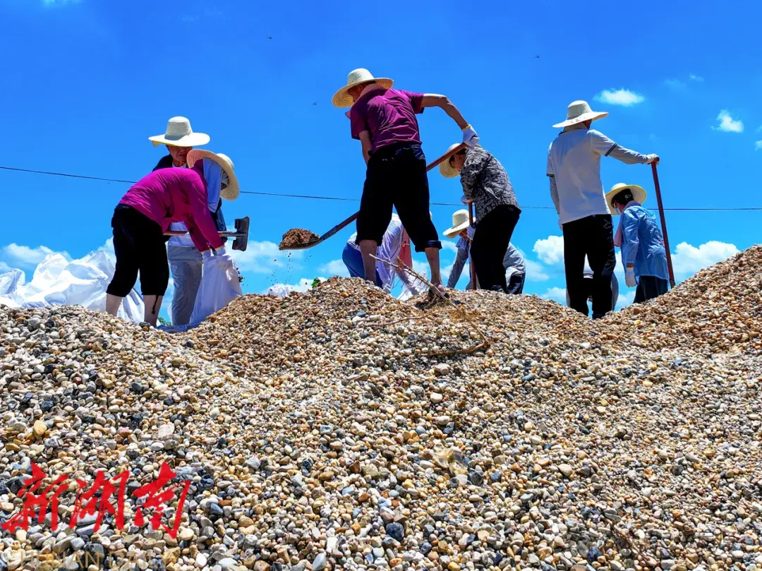 热辣滚烫 195名抢险队员在正午酷暑中抢灌砂石袋