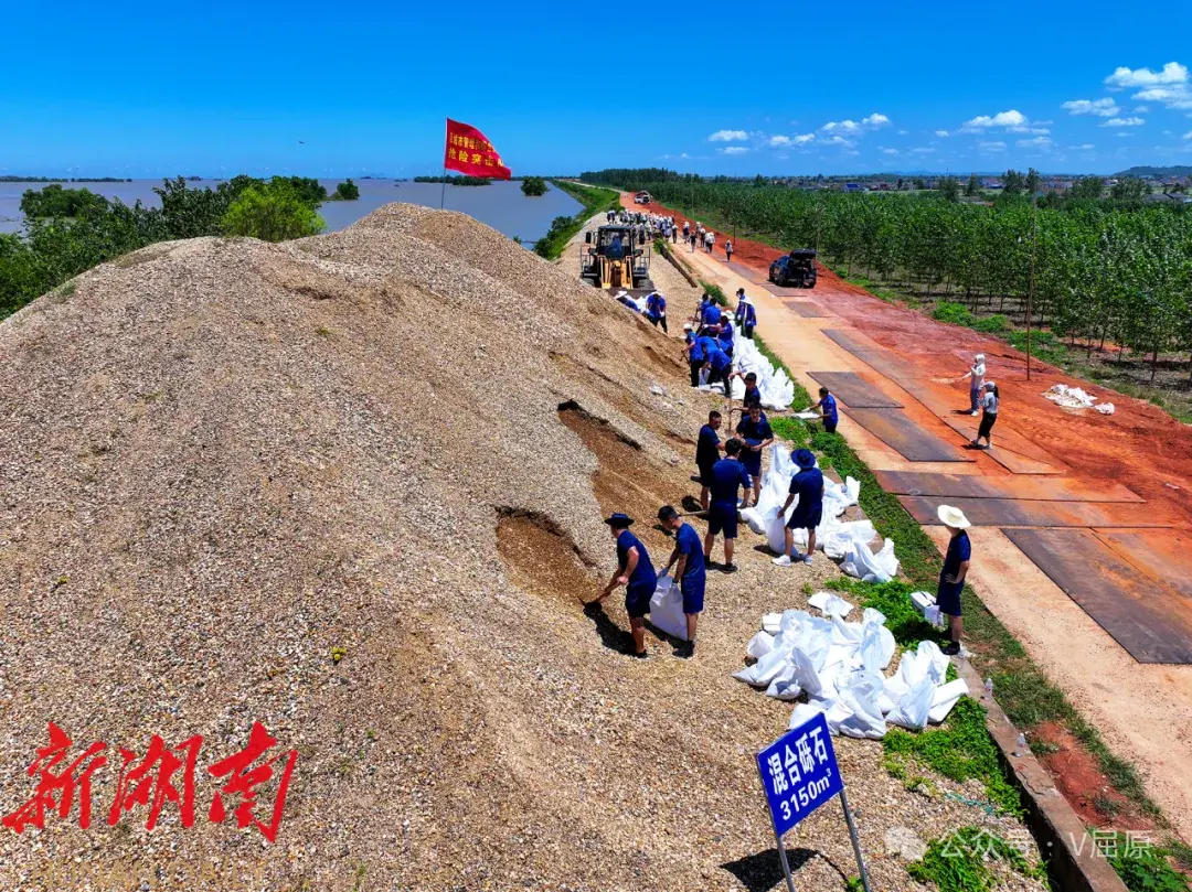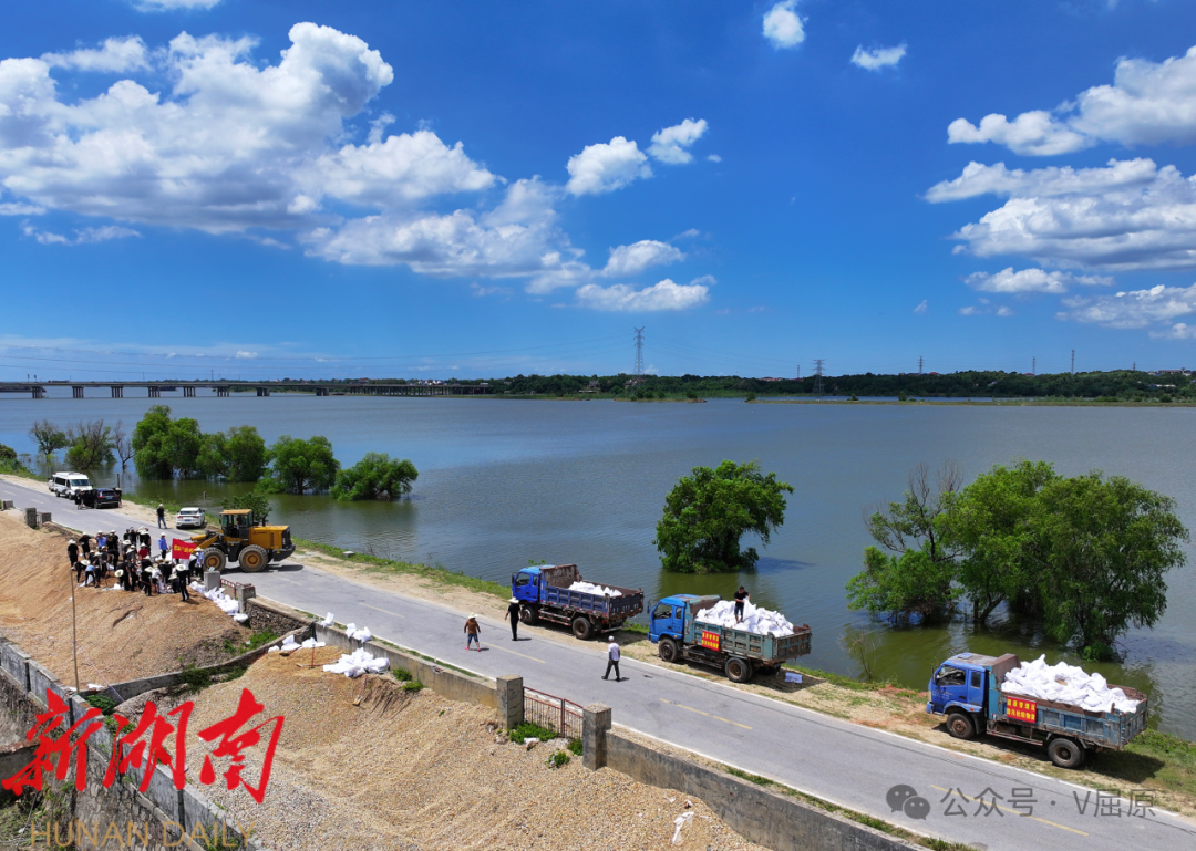 湖南日报·新湖南客户端7月31日讯(通讯员 姜瑶 周洋) 7月30日中午,屈原管理区户外气温已上升至35度,东西大堤地表温度已达到40度以上,与此同时,受台风“格美”和强降雨影响,湘江迎丰闸、汨罗江三星渡水位持续复涨,到当日中午,迎风闸水位达33.35米,三星渡水位达33.38米,直逼33.5米警戒水位,加之高洪水位长时间浸泡大堤,屈原抗洪形势更加严峻。