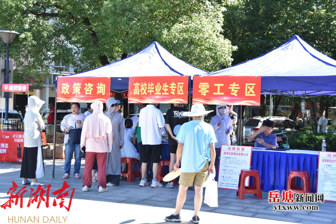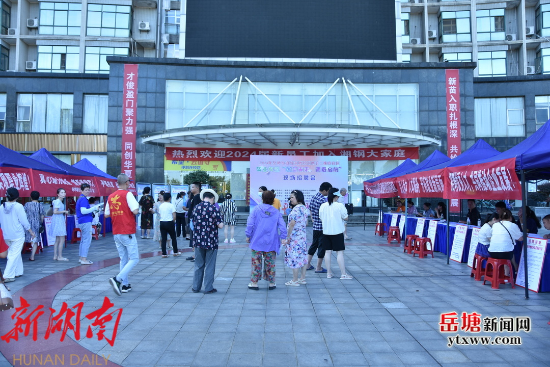 岳塘新闻网 7 月 30 日讯 ( 记者 郭思嘉 通讯员 唐竞茜)7月30日上午八点半,湘钢希望大厦前坪人头攒动,热闹非凡,岳塘街道纯冲塘社区联合三株岭社区在此举办毕业季暨“展望未来,青春启航”现场招聘会,为辖区居民搭建与企业对接的平台,助力他们尽快找到满意的工作。