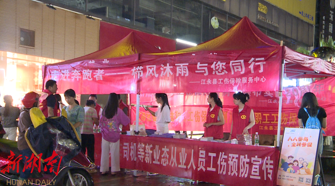 随后工作人员走访夜市摊贩、外卖员、网约车司机等户外劳动“奔跑者”人群,宣传《社会保险法》、《工伤保险条例》职业伤害保障试点政策,并发放宣传资料。
