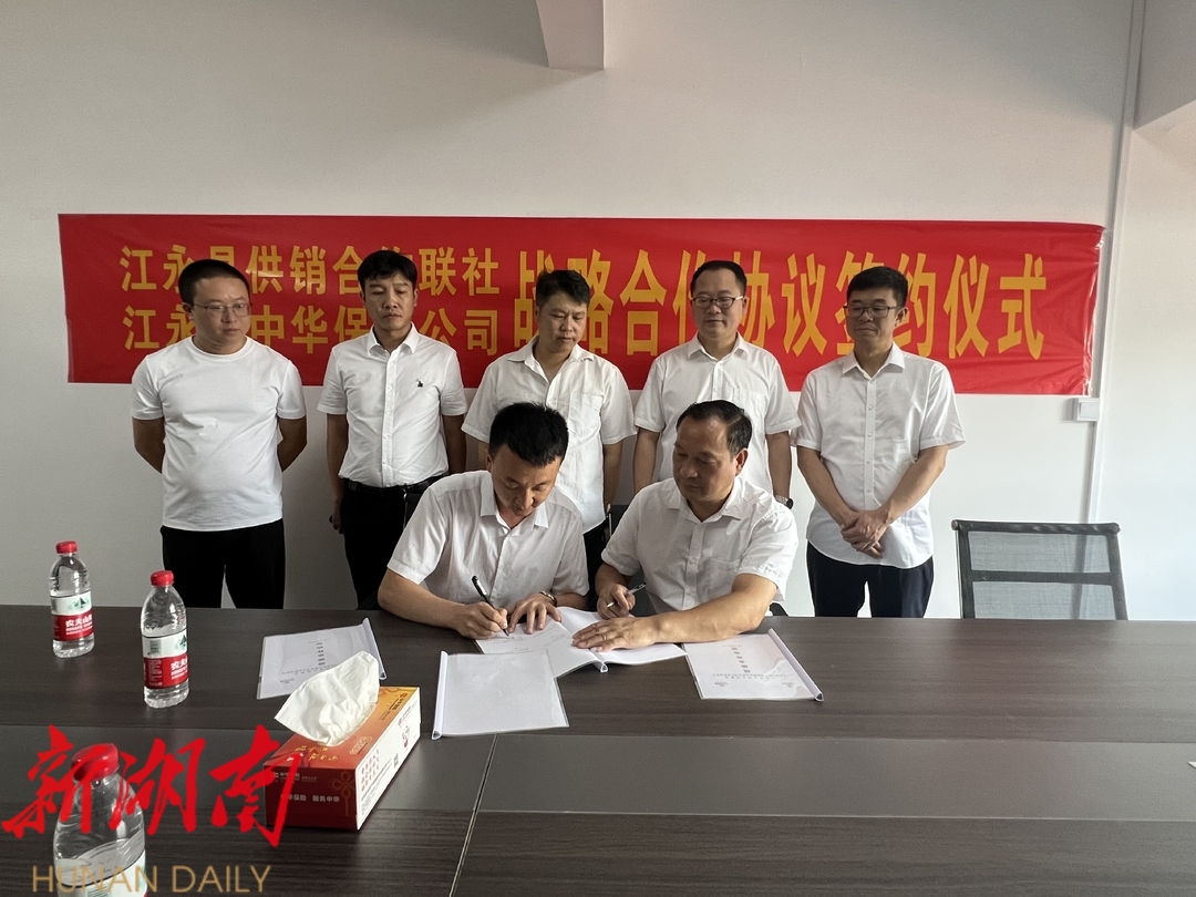 新江永客户端讯(记者 欧阳奥成 通讯员 卢剑辉 ) 7月31日,江永县供销合作联社分别与太保产险江永支公司、中华保险公司签署了战略合作协议,根据协议,三方将在农业保险、农业科技推广、农产品流通等领域展开深度合作,共同探索农业社会化服务的新模式、新路径。在供销农业社会化服务“大联盟”的背景下,通过深化与保险业的战略合作,降低农民种植风险,提升农业生产效益,推动农业产业升级。让广大农民享受“同质价优”“同价质优”的金融服务;聚力推动供销合作社密切与农民的利益联结,打通为农服务“最后一公里 ” 。