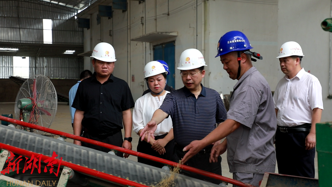 新江永客户端讯(记者 陈丽华 吴雨晴 ) 7月31日,县委书记唐德荣率队调研指导夏粮收购工作。在江永县粮食购销有限公司井边粮库,唐德荣 听取了相关负责人关于夏粮收储工作汇报,实地察看取样、检测、入库等工作情况,详细了解夏粮收购流程、粮食储备规模、收储进展、已入库粮食质量等,并对相关工作提出了意见和建议。