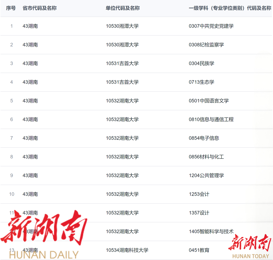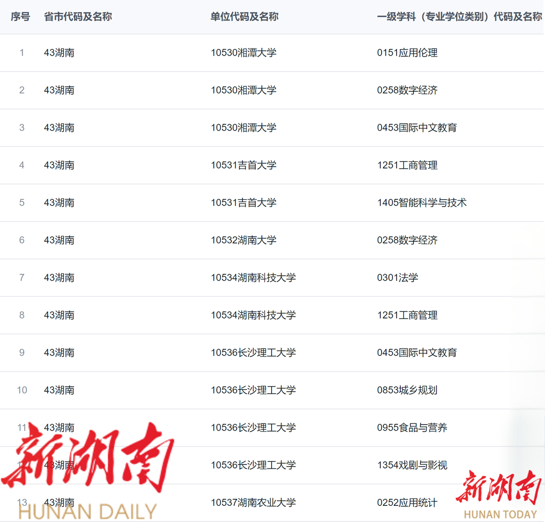 新增硕士学位授予单位 核查及评议结果显示,共有63个单位获得了三分之二及以上同意票,其中包括湖南文理学院、长沙学院、湖南工程学院、湖南第一师范学院。
