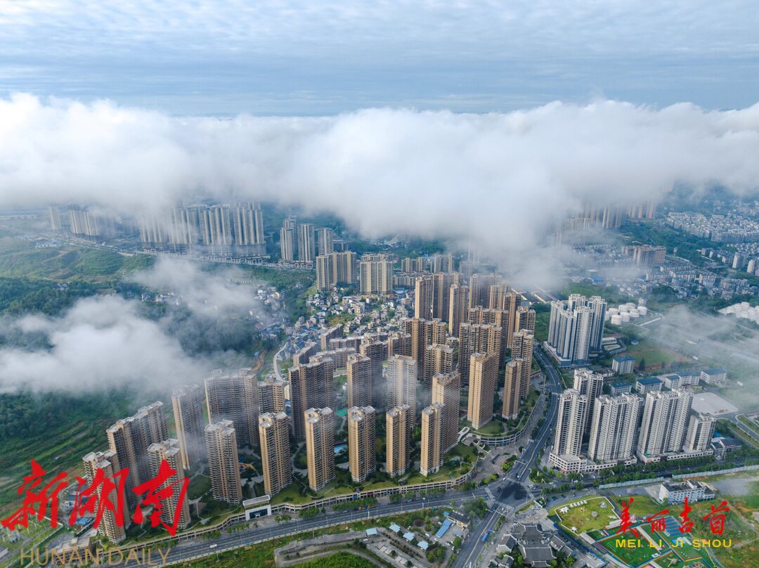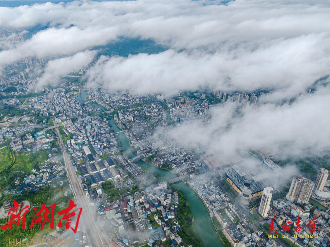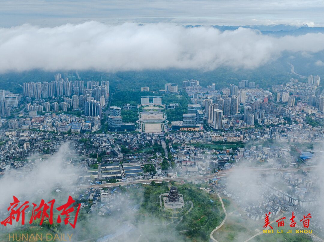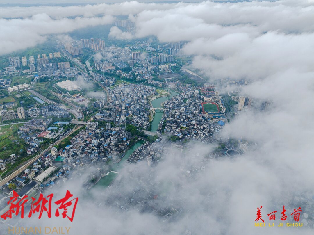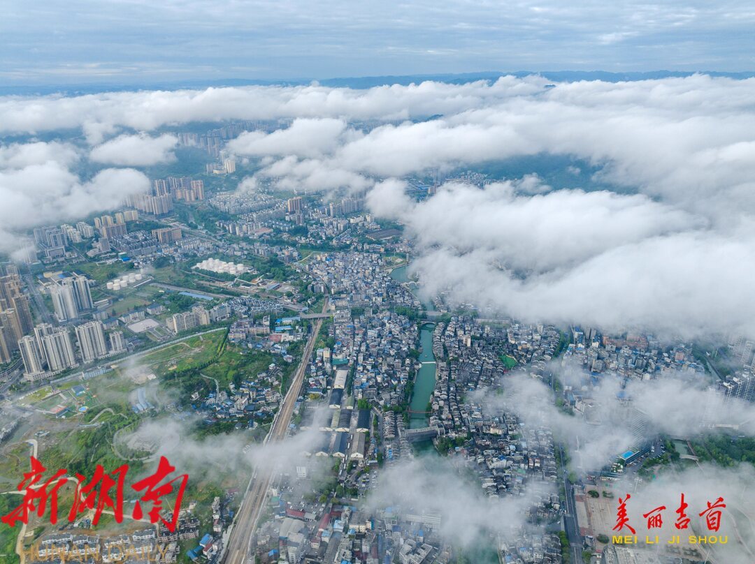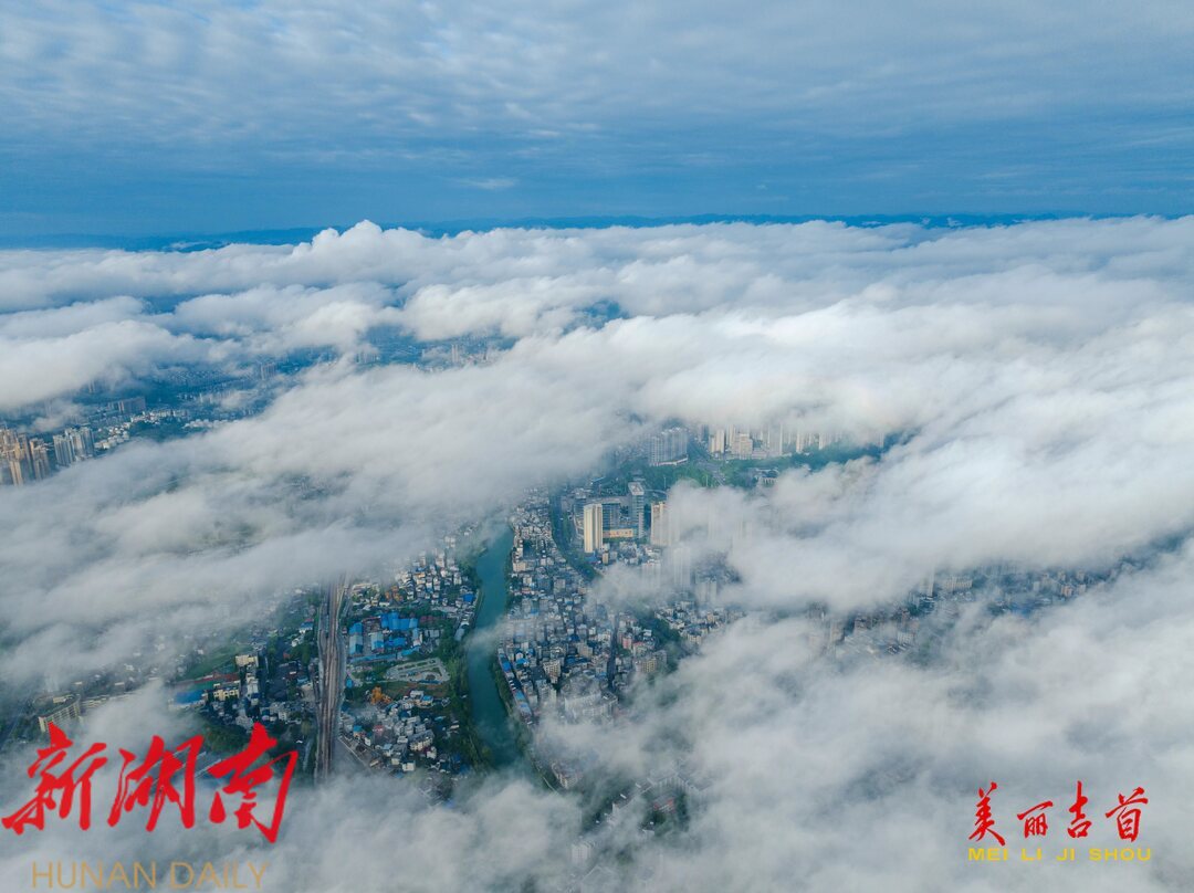8月3日,吉首市城区上空云海涌动,城市、河流、青山在云雾中时隐时现,呈现出一幅夏日里的美丽城市生态画卷。
