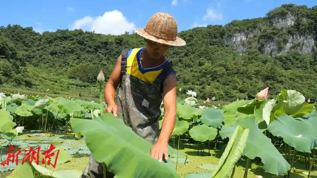 这片荷叶基地以前多数为沼泽地,合作社去年和村里签订了农田流转协议,今年上半年开始种植荷叶。“目前已经收了一批莲子,一亩田的莲子能卖4000元左右。机械化撒得比较均匀、快捷,一天就能完成,对藕的伤害也比较小。”合作社负责人尚生运说道。