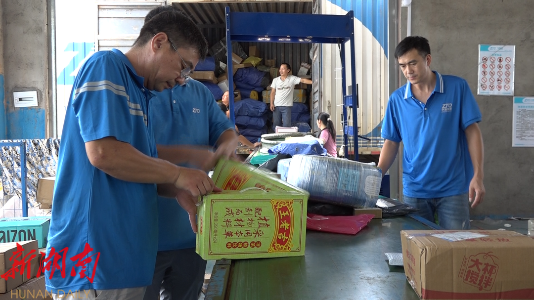 在江永县物流园内,快递员们正忙着对刚到的快递进行分拣、运输,烈日下的快递员们依然奔跑穿梭在大街小巷,用自己的汗水和热情为市民提供着便捷快速的寄送服务。