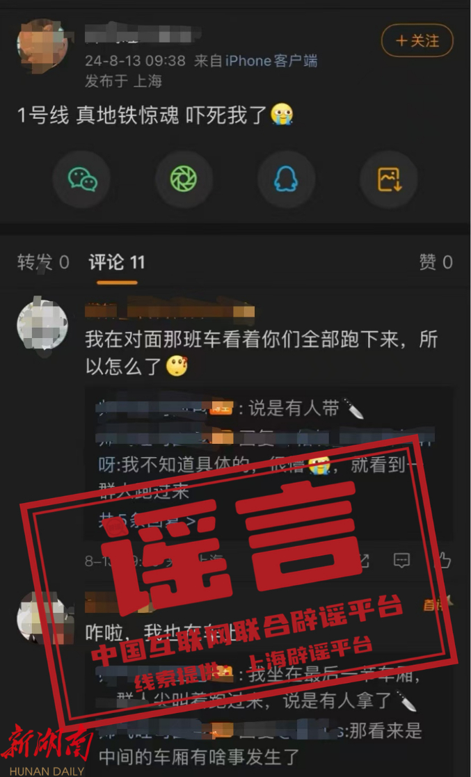 谣言:上海地铁1号线有人持刀致部分乘客集中下车?
