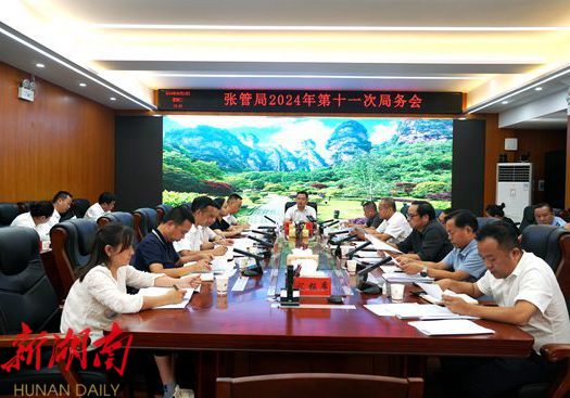 湖南日报·新湖南客户端8月13日讯(记者 王娇 通讯员 毛飞 唐宁梓)8月13日,张管局党委副书记、局长张冲主持召开张管局2024年第十一次局务会。局领导王伟、王祥、杨少强、向蔓、毛坚坚及局属各单位主要负责人参加会议。