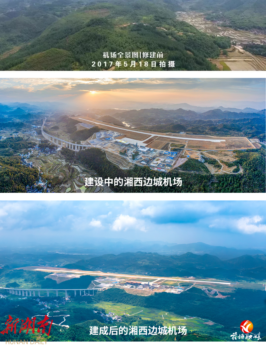 机场建设前后对比图 湘西边城机场供图