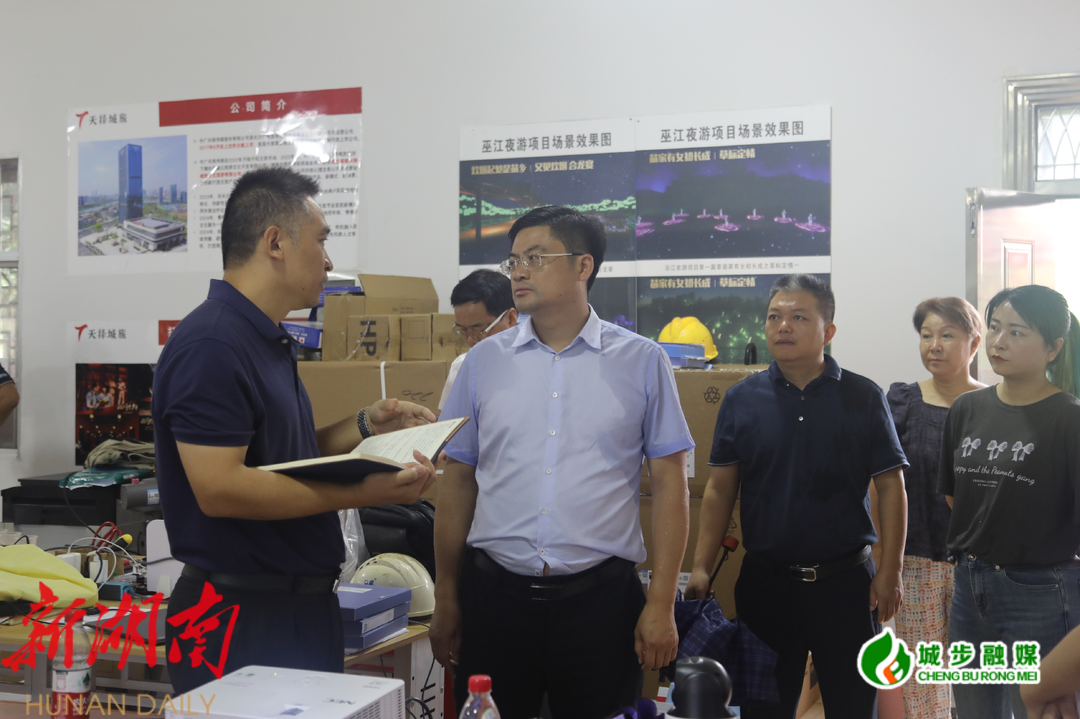 图为县委书记余勋伟一行在巫江夜游项目指挥部了解项目相关情况