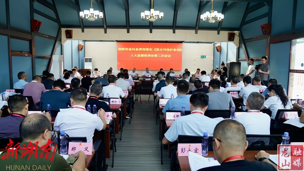 龙山县融媒体中心8月16日讯(记者 罗佳清 彭思倩 莫代银)同饮一河水,共护一河美。8月16日,湘鄂两省四县贯彻落实《酉水河保护条例》人大监督联席会第二次会议在龙山县举行。大家济济一堂,共商深化监督协作,共促酉水协同治理,共护酉水碧水清流。