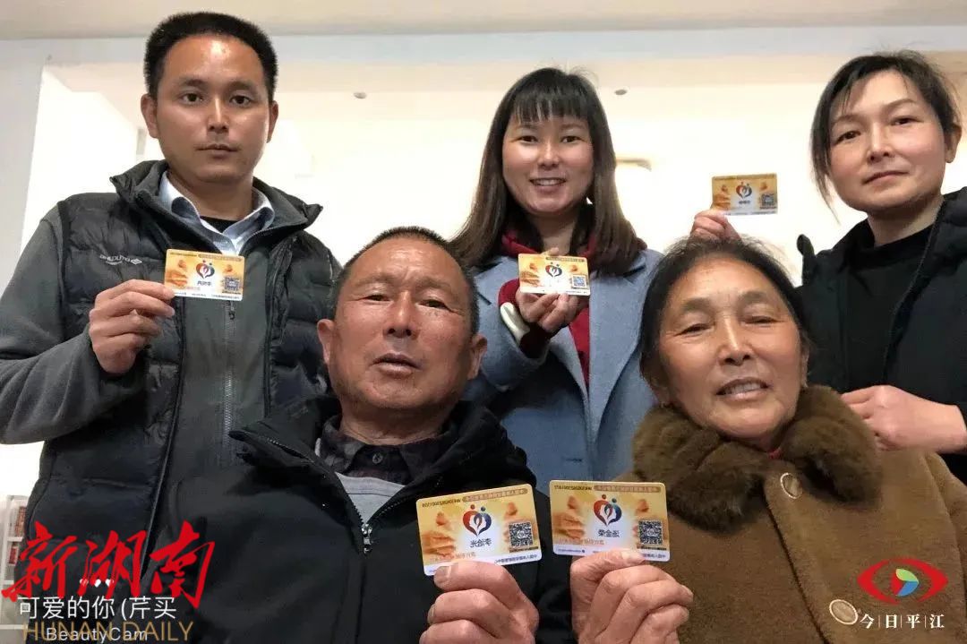 大家请先来看一张照片。这张笑脸满屏的照片是一家五口的家庭合影,他们人手拿着一张人体遗体器官捐献登记卡,他们是平江县第一个人体器官遗体捐献登记家庭。去年三月份,第一次看到这张照片的时候,我和同事凭着新闻敏感,觉得这张照片背后有故事,于是,我们迫不及待地赶到红十字会采访这张照片的发布者,也就是照片最中间这位,这个家庭第一个捐献登记者——二女儿李沁钰。