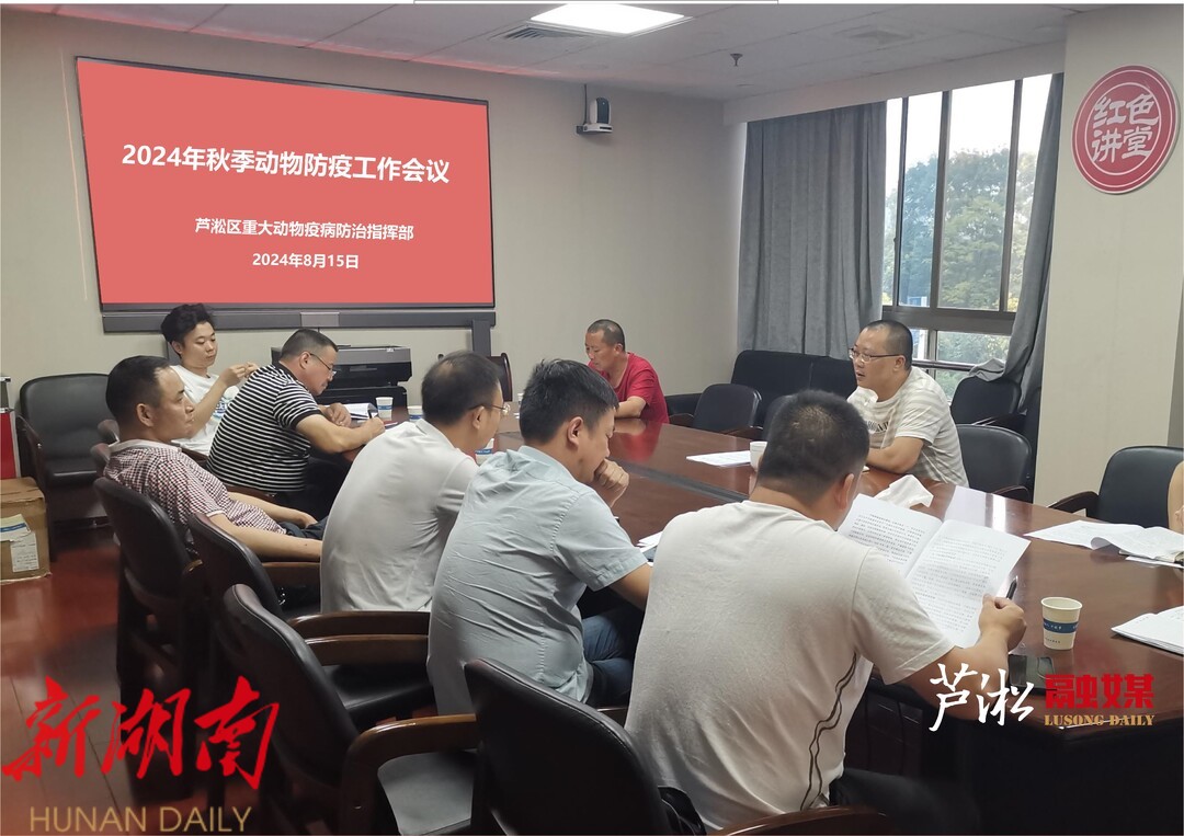 8 月15日,区重大动物疫病防治指挥部召开芦淞 区2024年秋季动物疫病防控工作会议,区畜牧水产服务中心主任及工作人员,白关镇、涉农街道办事处农办主任,乡镇动物防疫站站长、骨干防疫员参加会议。会议强调:各部门要充分认识做好秋季动物防控工作的重要性,切实增强责任感和紧迫感,要以高度负责的精神,扎实做好秋季动物集中 免疫工作 。