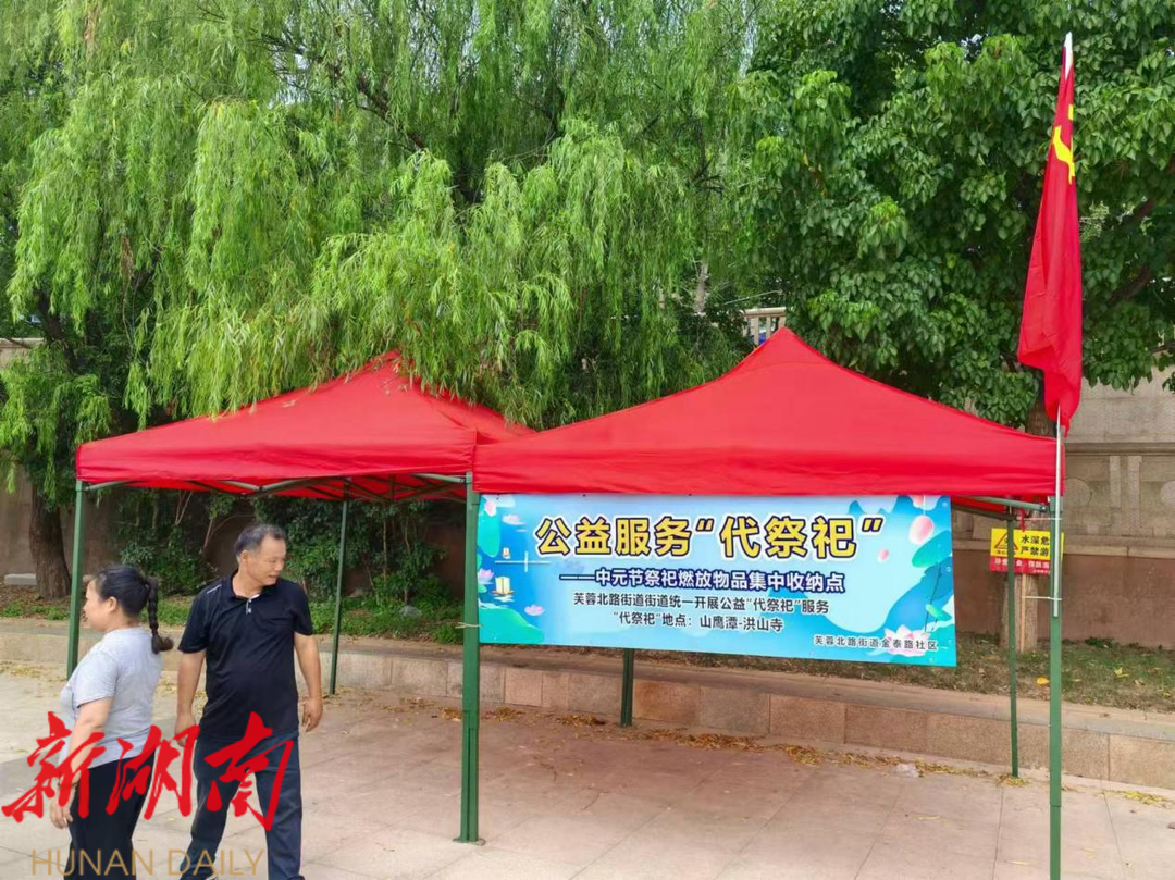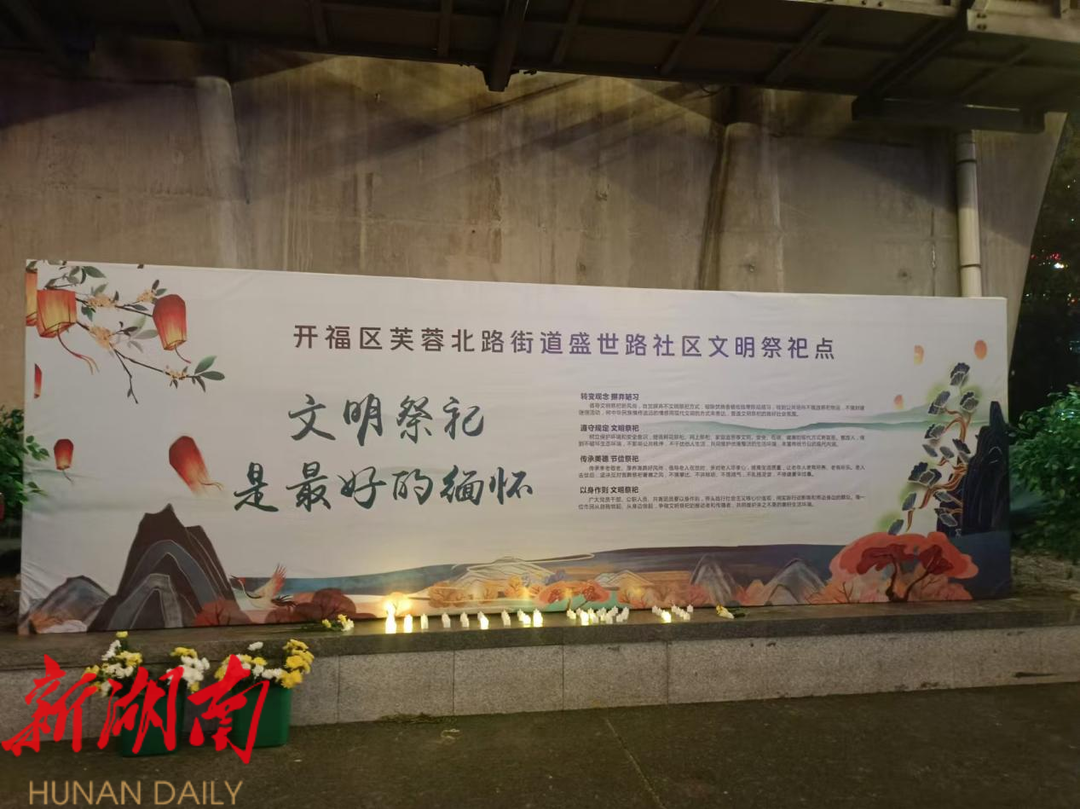 芙蓉北路街道在湘江河边福元路大桥下划分了特定的祭祀点位,牵头开展文明祭祀宣传,拒绝随意焚烧纸钱和香烛,避免烟雾弥漫损害空气质量。同时在点位上,为大家提供环保祭祀的引导和服务,采用敬献鲜花、书写寄语的方式,并委托“代祭祀”烧包物品统一运送至洪山寺进行焚烧,最大程度减少祭祀焚烧行为,让真挚的情感在宁静与清新中传递。