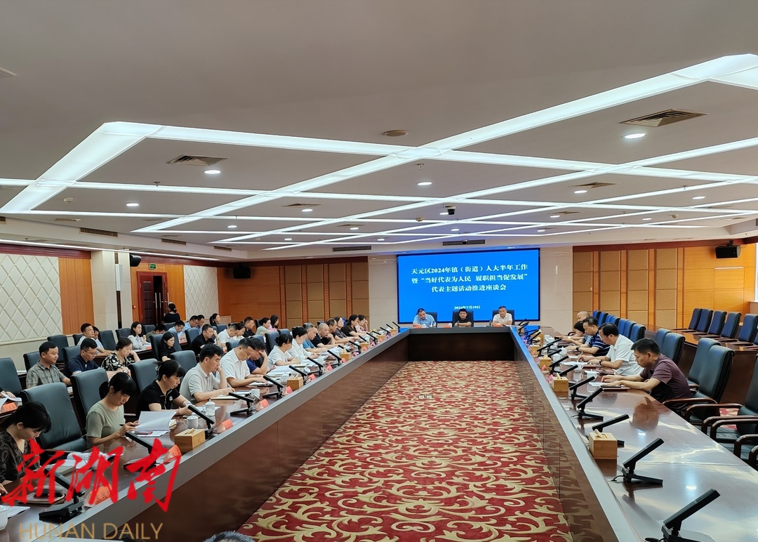7月19日上午,天元区人大常委会召开2024年镇(街道)人大半年工作暨“当好代表为人民 履职担当促发展”代表主题活动推进座谈会。市人大常委会代表工作委员会主任何若愚、区人大常委会党组书记、主任周琪出席会议并讲话。