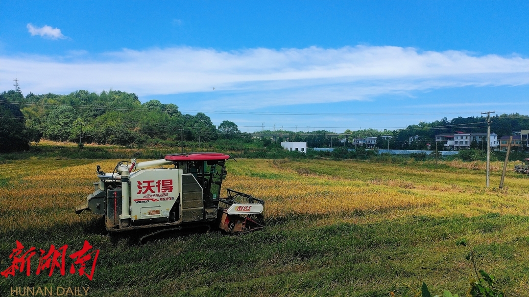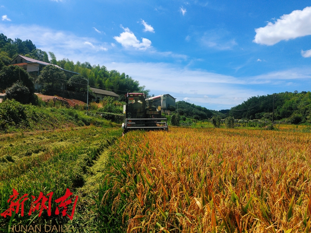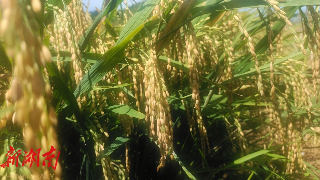 7月17日,天元区雷打石镇铁篱村125亩早稻迎来丰收,金黄的稻田在阳光的照耀下熠熠生辉。微风拂来,阵阵稻浪随风起伏,一簇簇沉甸甸的稻穗压弯了腰,乡村、稻田交相辉映,构成一幅美丽的丰收画卷。