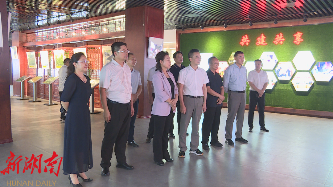 图为肖百灵(左三)在城步民族发展展示馆调研