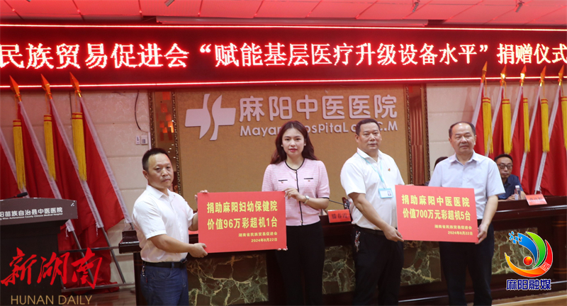 8月22日,湖南省民族贸易促进会与北京德康公益基金会“赋能基层医疗升级设备水平”捐赠仪式在县中医医院举行。湖南省民族贸易促进会会长谢作钦、副县长滕春霞参加捐赠仪式。