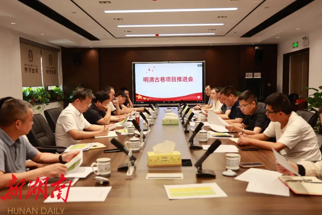 会前,付振南一行前往明清古巷项目建设现场实地察看了项目建设进度,详细了解了入驻商户签约情况。在推进会上,明清古巷公司汇报了建设、招商工作情况。与会人员就如何增强文化体验、引进特色商户、扩大项目影响力等方面互相交流了意见。
