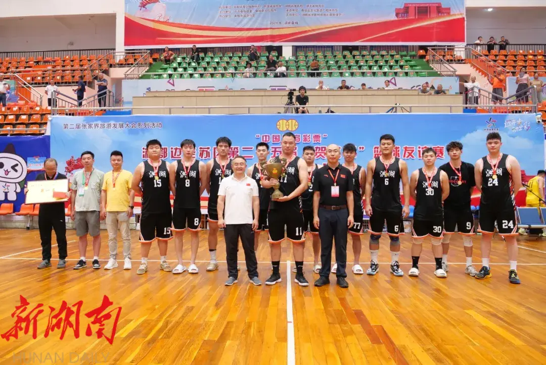 湖南日报·新湖南客户端 8 月 24 日讯 (记者 尚柳 郭军 杨柳)8月24日,湘鄂边老苏区第二十五届“贺龙杯”篮球友谊赛在桑植县贺龙体育馆圆满收官。经过5天38场激烈角逐,湖北洪湖代表队获得冠军,湖南桑植、永顺、龙山代表队分获二、三、四名。县委副书记、县长梁高武,县领导王茂蓉、宋云飞、胡辉,贺龙纪念馆馆长张先政出席闭幕式。