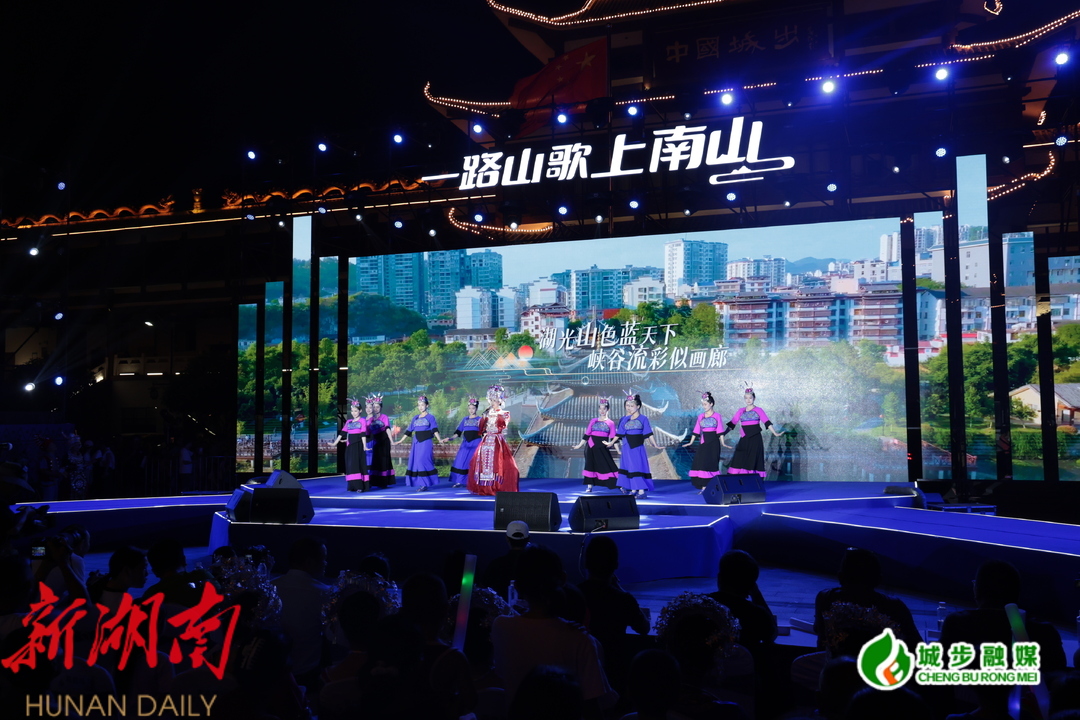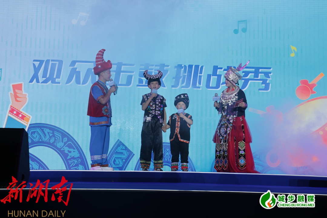 在青年苗族歌手龙美丽和舞蹈演员们《可爱的苗乡》欢快奔腾的 歌舞声中,山歌节全民秀拉开序幕。 来自城步长安营、白毛坪等乡镇的山歌达人们上演了精彩纷呈的山歌秀,4岁“山歌萌娃”的歌声清脆悦耳,70多岁大爷的歌喉响亮,山歌 “凤凰传奇”的表演美妙绝伦,阿山哥阿南妹们的《螃蟹歌》《麻勺开花溜溜艳》《哪跌咧今天到苗乡》等各民族风格迥异的歌舞也相继上演。一首首原汁原味的山歌悠扬婉转,现场观众沉浸在美妙的歌声中,掌声与欢笑声不断。