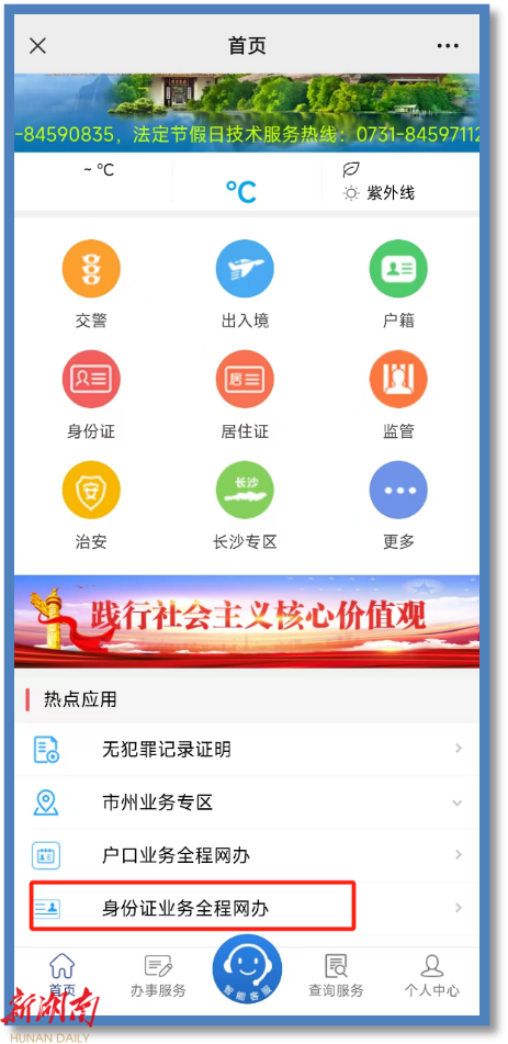 湖南公安机关推出有效期满换领身份证等五项全流程网上办理服务