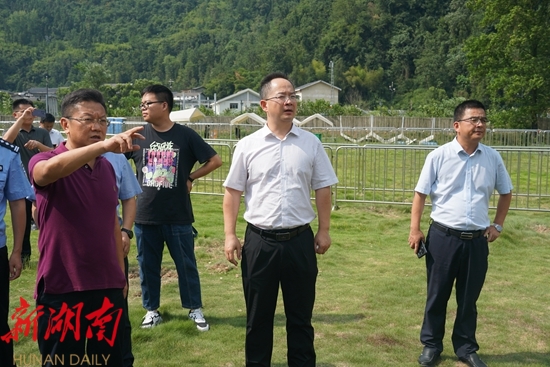 “停车场能容纳多少车辆?”“引导人员是否到位?”在岩门新村停车场、大热武陵源营地、华速飞驰赛车基地、张家界千古情景区,张龚实地了解了停车场地规划、交通管控布局、音乐节场地搭建、区域规划筹备等情况,并就部分细节提出了优化建议。