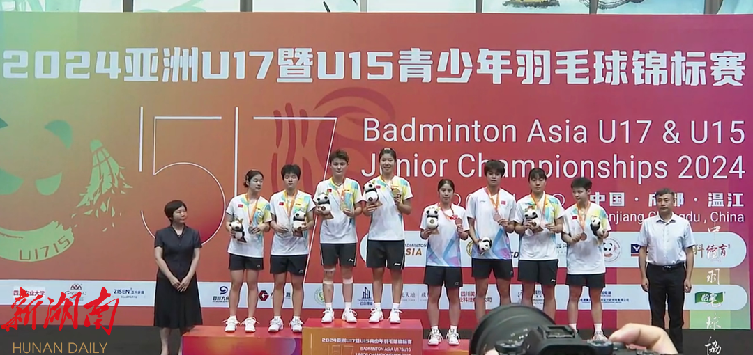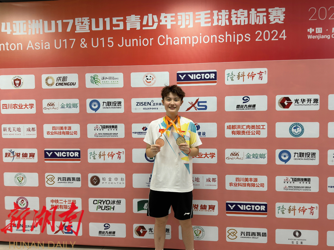 湖南日报·新湖南客户端8月26日讯(通讯员 容轩) 8月25日,湘阴籍运动员许修言与队友刘一诺夺得在四川省成都市举行的2024亚洲U17暨U15青少年羽毛球锦标赛U17组女子双打冠军。