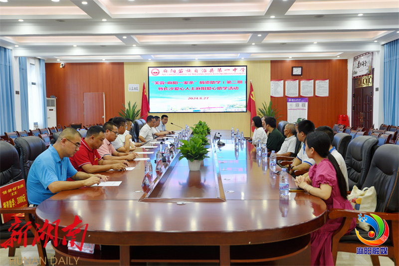 8月27日,由长沙市芙蓉区驻麻阳苗族自治县对口帮扶工作队、麻阳苗族自治县农业农村局(乡村振兴局)共同开展的“芙蓉•麻阳一家亲”(第二期)捐资助学暨长沙爱心人士麻阳爱心助学活动在麻阳第一中学举行。