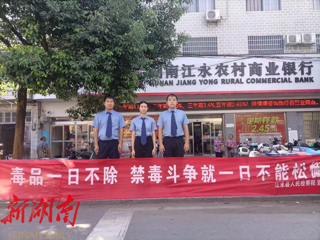 新江永客户端讯(通讯员 何文琦 陈俊宇 彭兰) 近日,江永县人民检察院组织干警到上江圩镇主街道开展禁毒宣传活动,将禁毒知识送到群众身边。