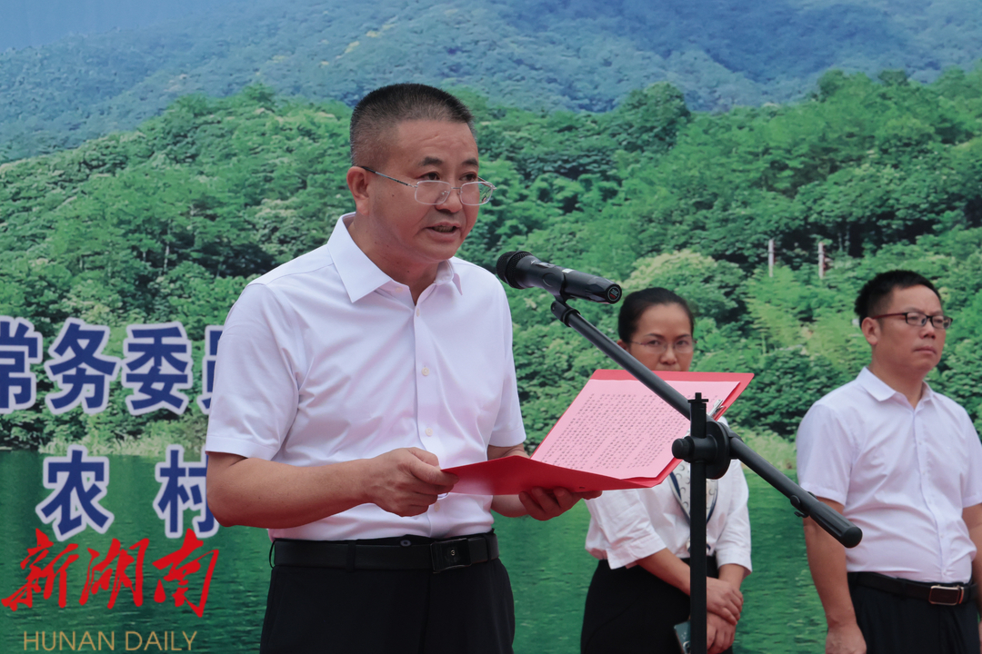 图为县委副书记、县长王慧敏宣布《城步苗族自治县巫水保护条例》颁布实施