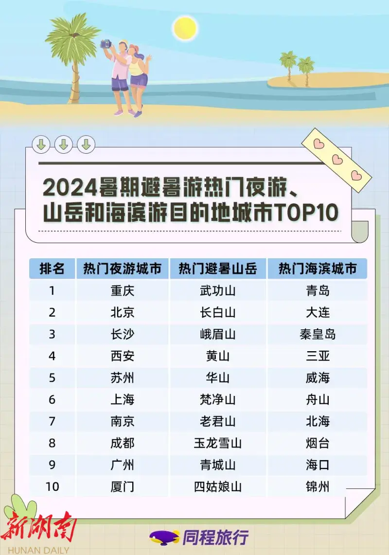 2024暑期避暑游热门夜游、山岳和海滨目的地城市Top10榜单